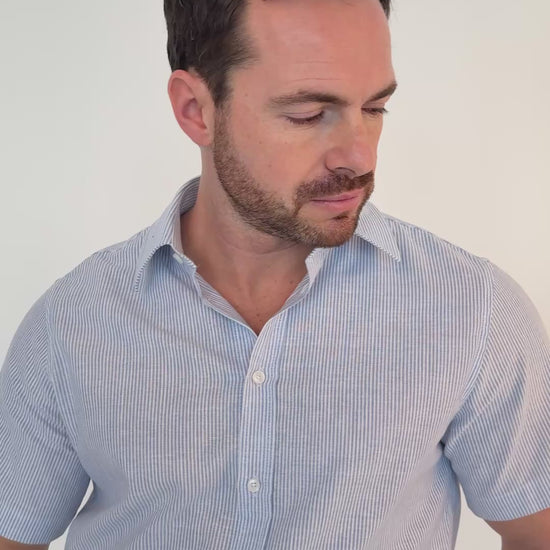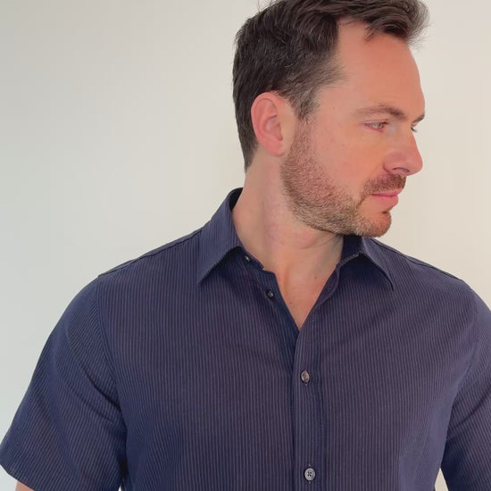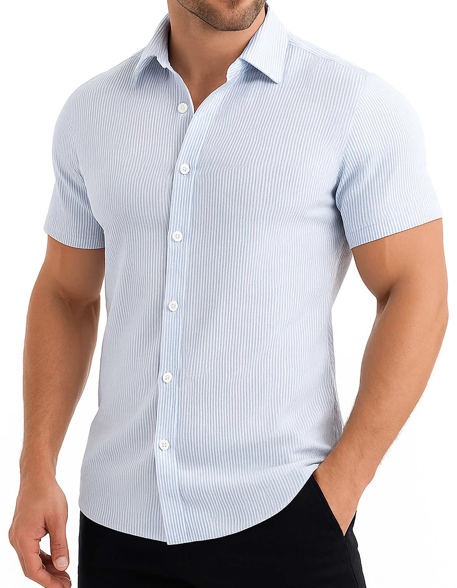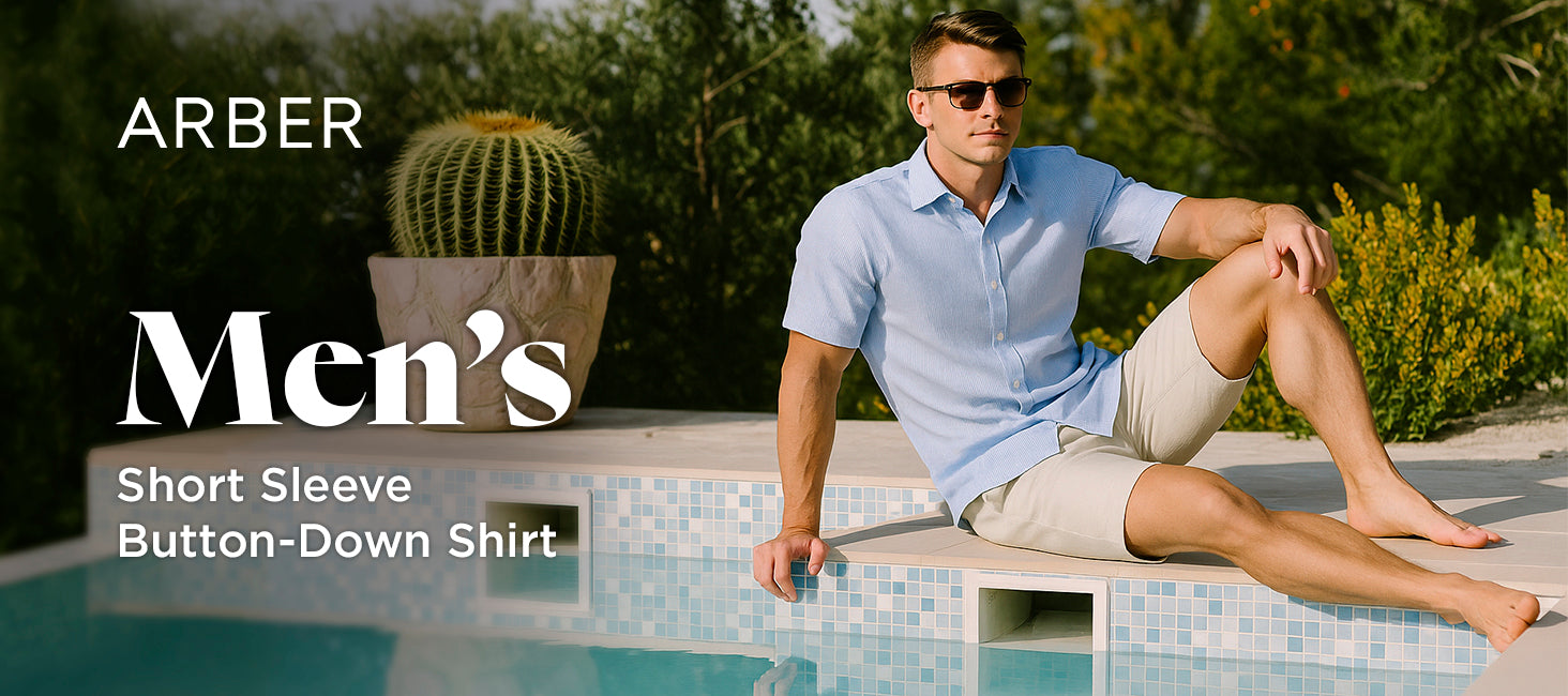 Arber Men's Slim-Fit 100% Cotton Short-Sleeve Shirt, Lightweight Breathable Button-Down; Blue or Dark Blue.