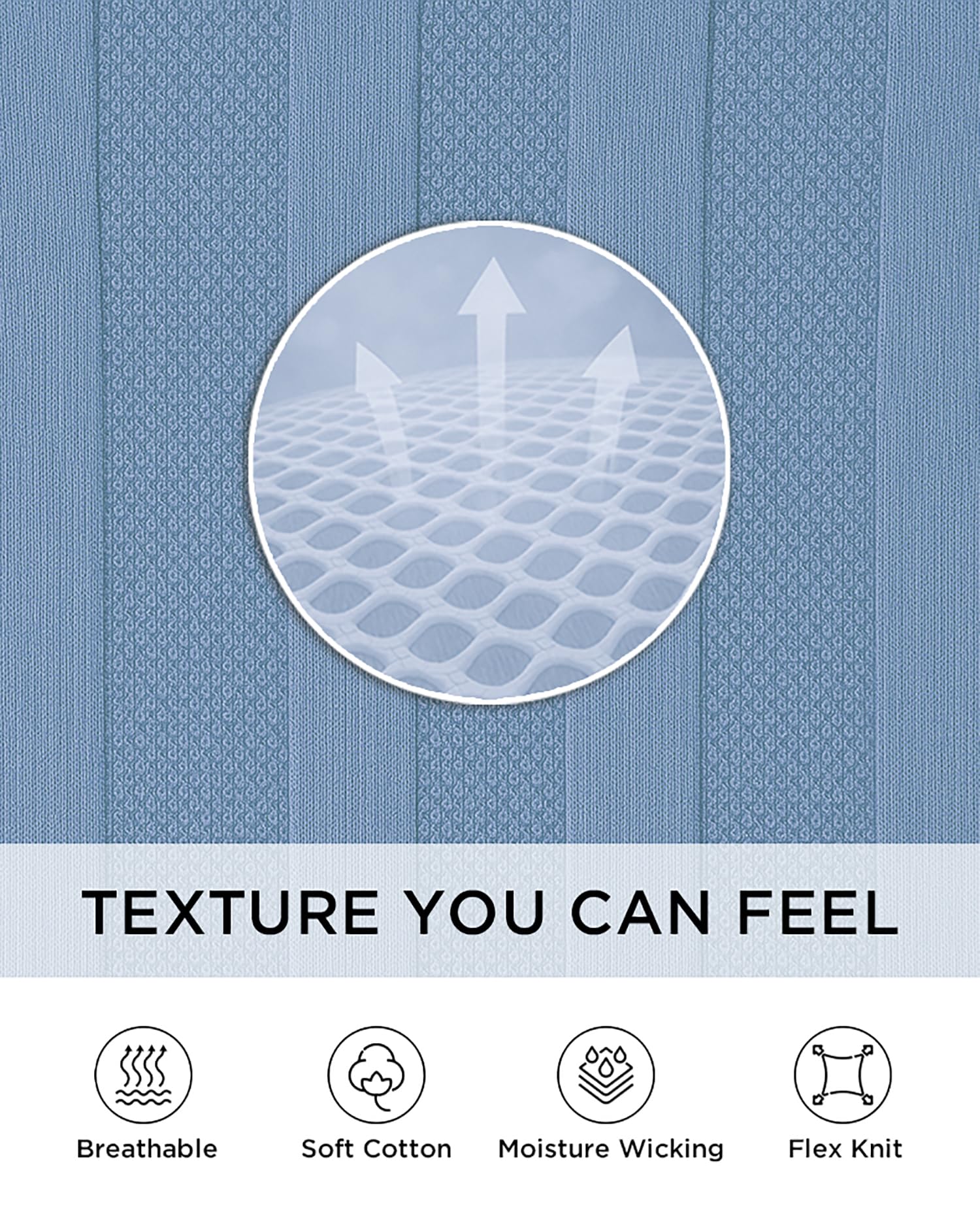 Innovative knit structure – airy texture enhances airflow, keeping you cool and dry in warm weather.