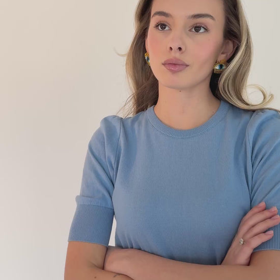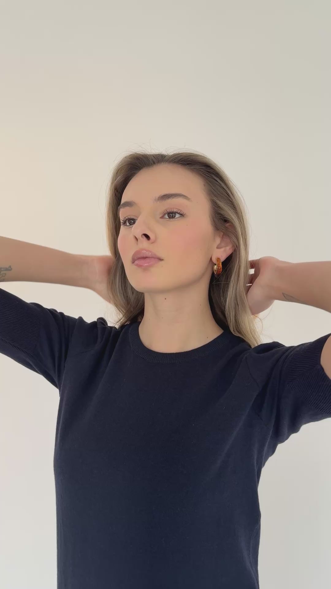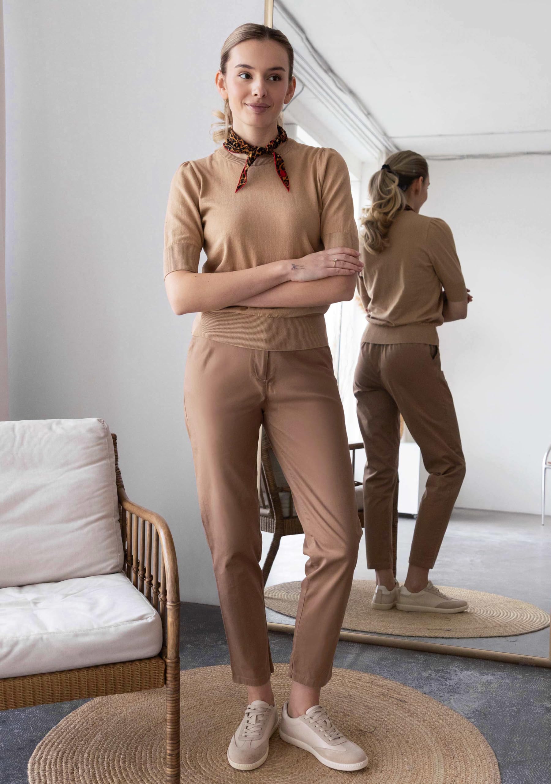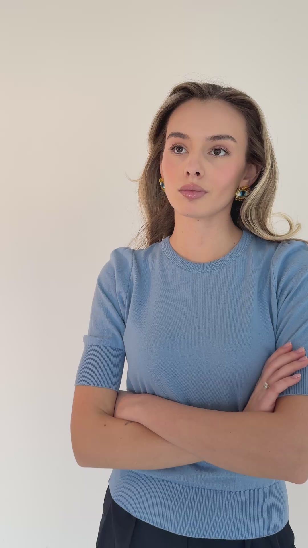 Flattering slim fit – tailored silhouette with crew neckline and ribbed hem for a polished, feminine look.