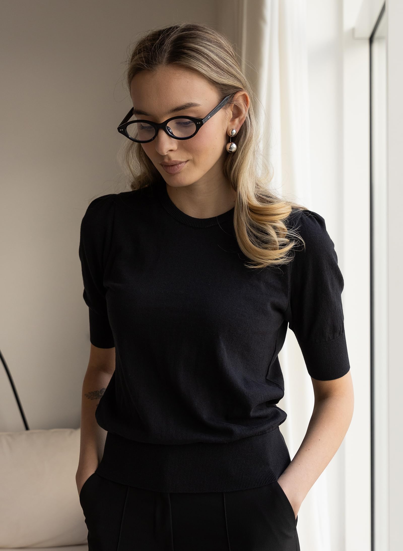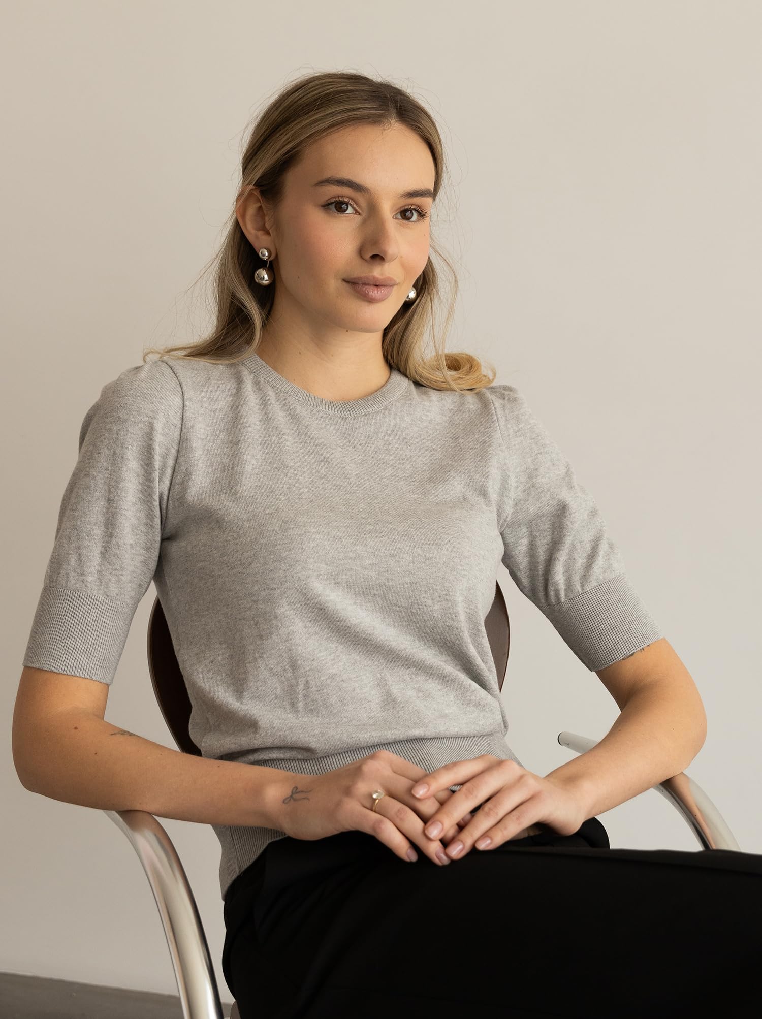 - Elegant knit sweater top – women’s short sleeve pullover perfect for office, casual, or weekend outfits.