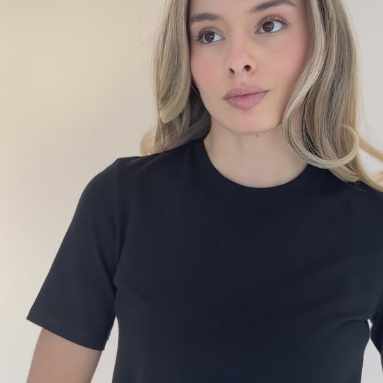 Arber Women’s Slim Fit Crew Neck T-Shirt – 95% Cotton 5% Elastane, Breathable Stretch Basic Short Sleeve Tee, Black & White